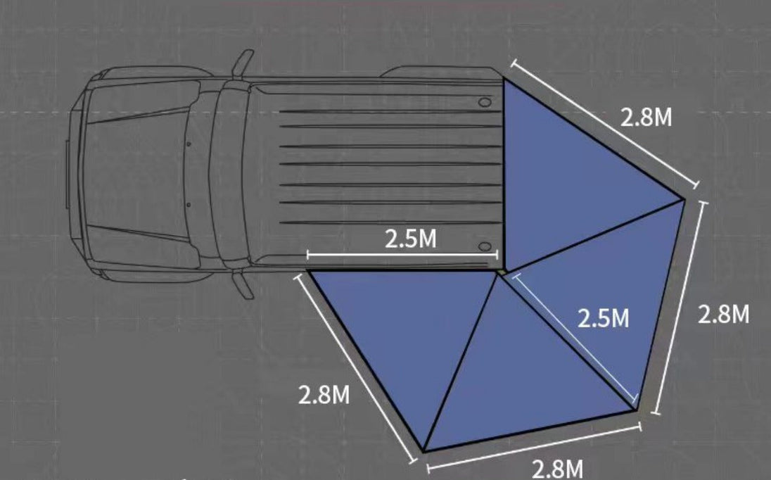Outdoor shelter/covering that extends around the side of your vehicle, providing shade and protection from the elements. Offer a wide coverage area, spanning 270 degrees of the vehicle's perimeter creating a comfortable outdoor space.